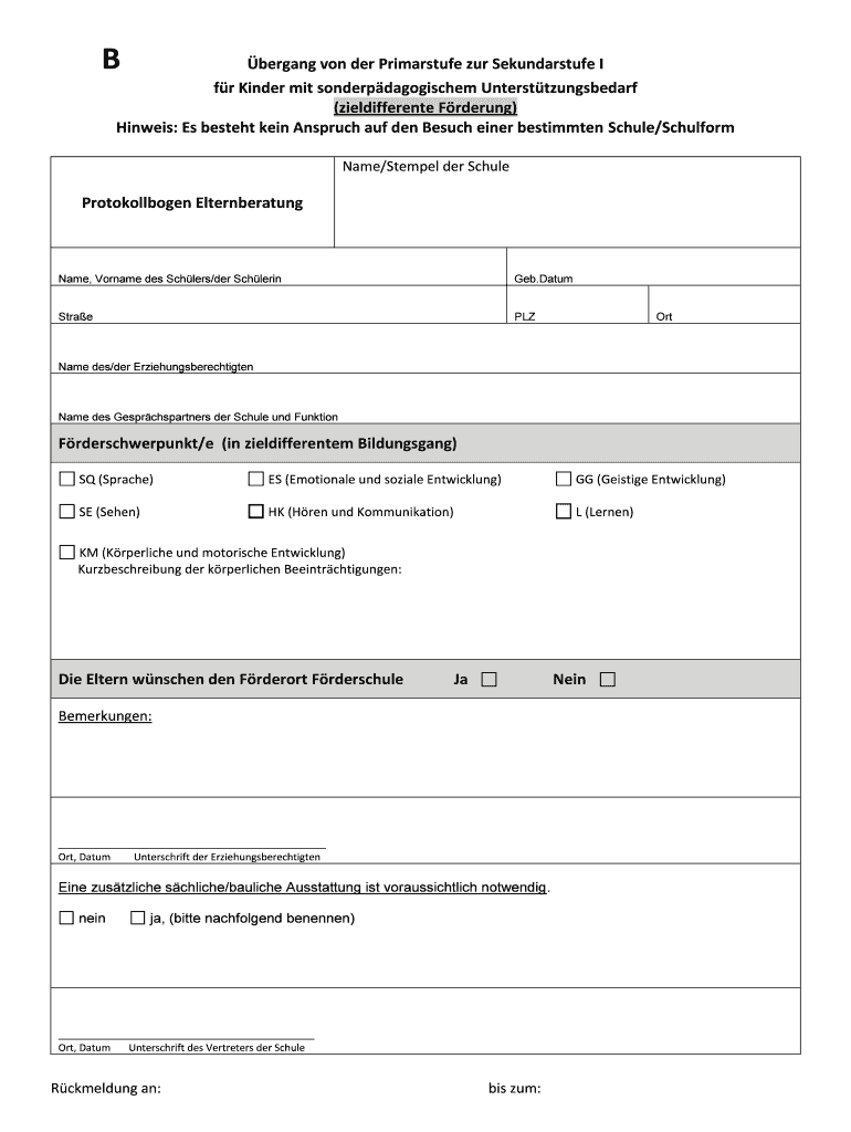 Der Namensstempel der Schule muss in einer offiziellen Vorlage eingetragen und eingereicht werden.