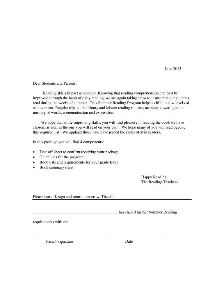 June 2013 Dear Students and Parents, Reading skills impact academics. Knowing that reading comprehension can best be improved through the habit of daily reading, we are again taking steps to ensure