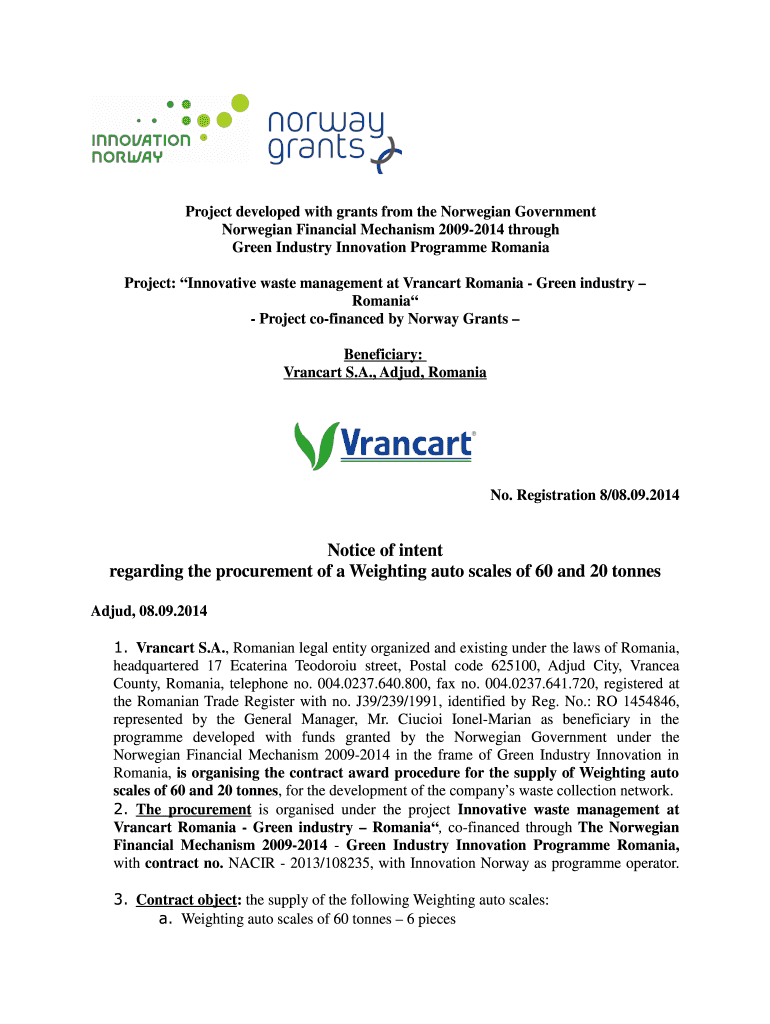 Get the free Notice of intent Weighting auto scales ENG - bVrancartb Adjud - vrancart