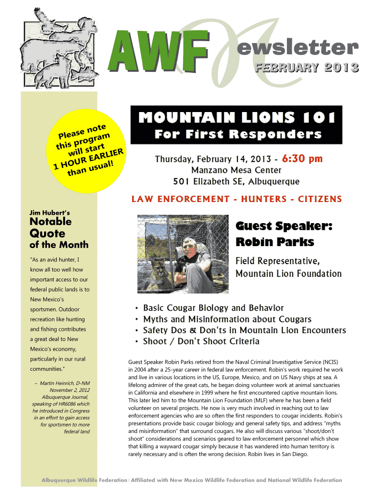 Get the free Notable FEBRUARY 2013 6:30 pm - Albuquerque Wildlife Federation - abq nmwildlife