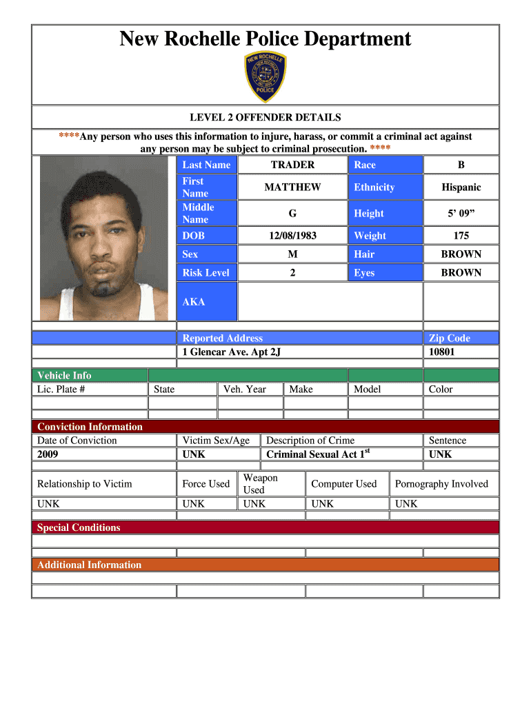 Get the free New Rochelle Police Department LEVEL 2 OFFENDER DETAILS ****Any person who uses this...