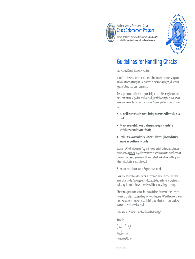 Please Retain This Document for Future Reference. You may wish to post these guidelines in an easily accessible area for managers or other staff responsible for handling dishonored checks. Sample
