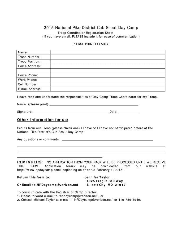 Get the free National Pike District 2015 Cub Scout Day Camp Call for Troop Coordinators