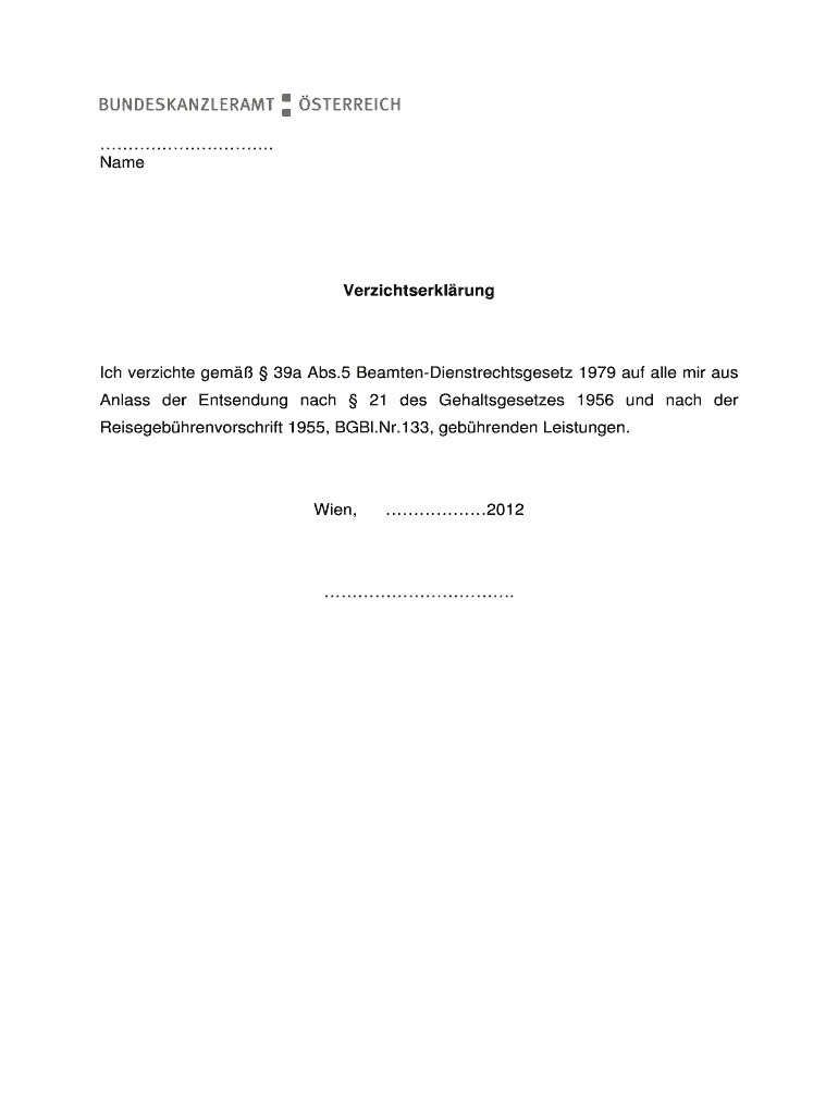 . Name Verzichtserklrung ICH verdict gem 39a Abs.5 BeamtenDienstrechtsgesetz 1979 AUF all emir AUS An lass her Extending each 21 DES Gehaltsgesetzes 1956 UND each Reisegebhrenvorschrift 1955, Bbl.