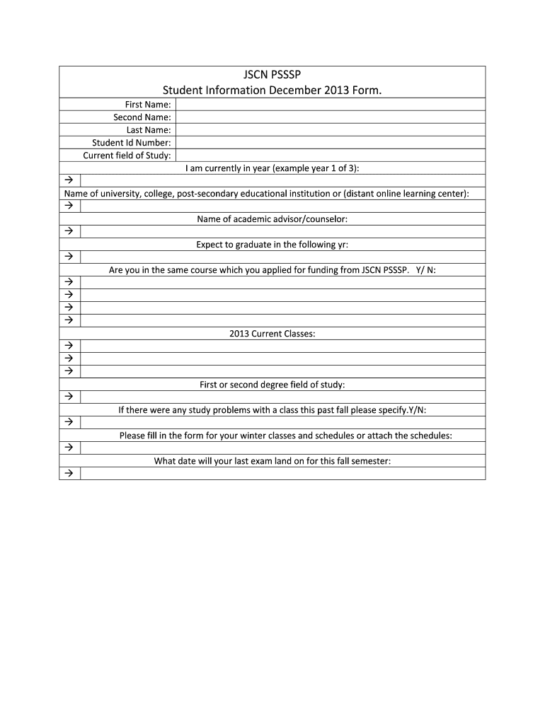 Get the free JSCN PSSSP Student Information December 2013 Form