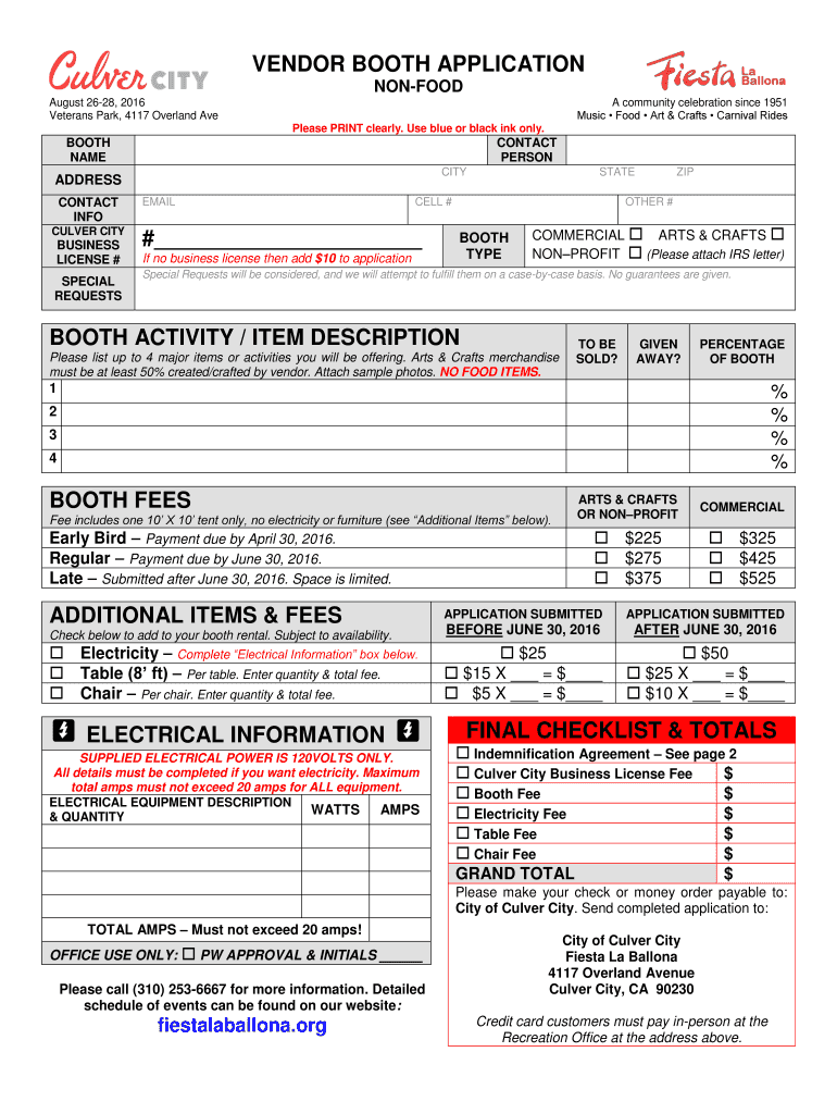 Get the free Non-Food Vendor Application Form - Fiesta La Ballona - fiestalaballona