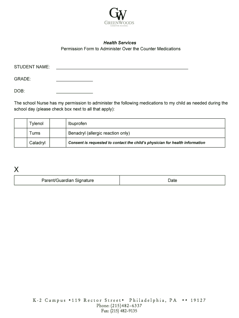 Get the free Health Services Permission Form to Administer Over the - greenwoodscharter