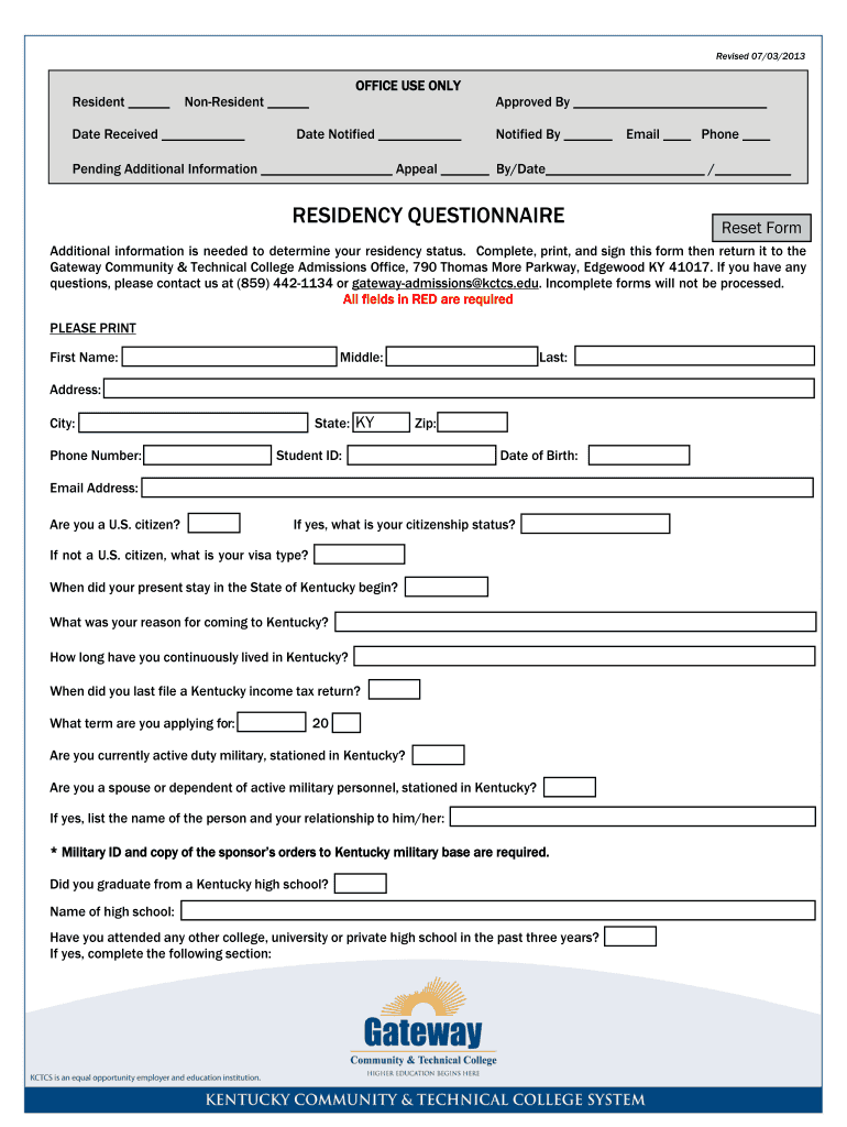 Get the free Gateway Community Technical College Residency Questionnaire Application for Residenc...