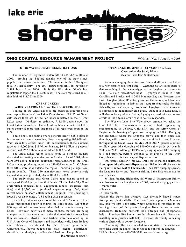 Get the free OHIO W ATERCRAFT REGISTRATIONS - greencitybluelake