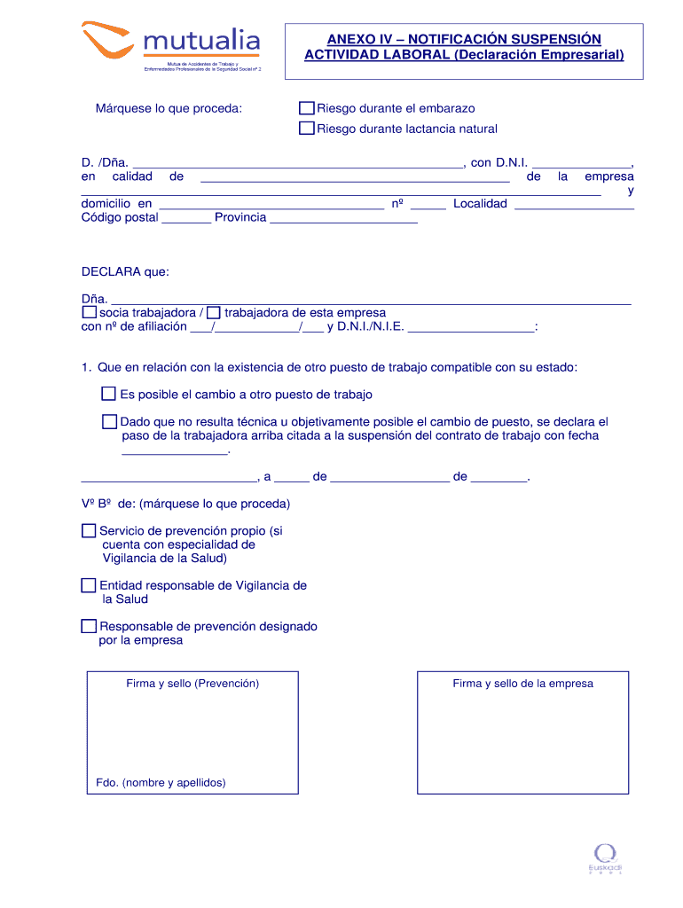 Get the free ANEXO IV NOTIFICACI N SUSPENSI N ACTIVIDAD ... - Mutualia - mutualia