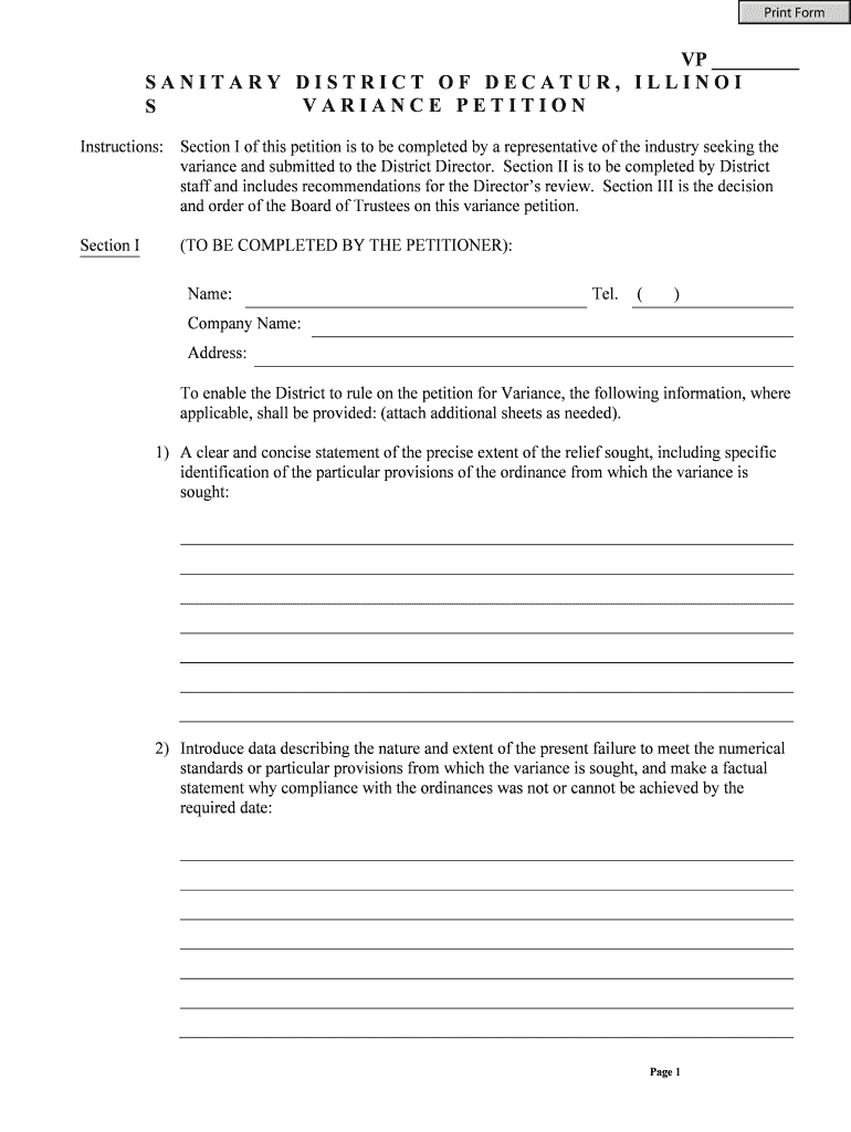 Get the free Variance Petition form - Sanitary District Of Decatur