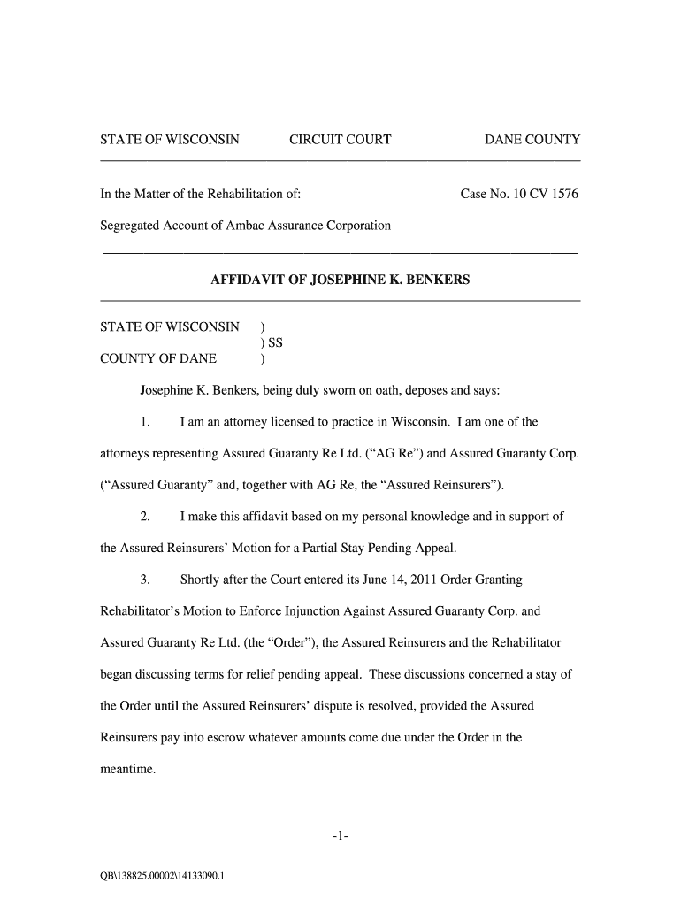 Get the free Affidavit of Josephine K Benkers - Ambac Policyholders Information bb