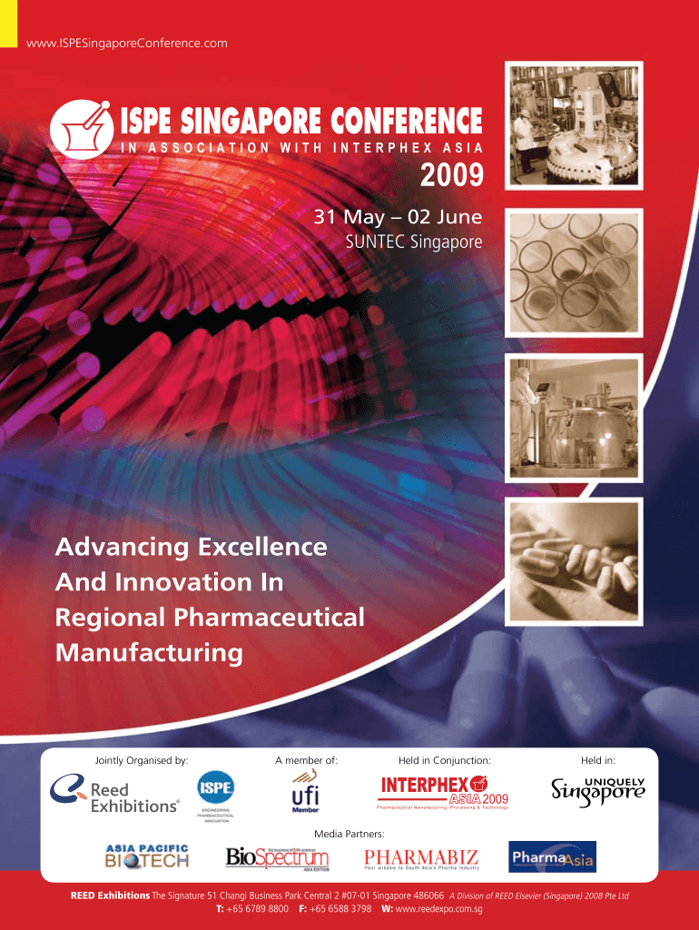 WWW.ISPESingaporeConference.com 31 May 02 June SUN TEC Singapore Advancing Excellence And Innovation In Regional Pharmaceutical Manufacturing Jointly Organized by: A member of: Held in Conjunction: