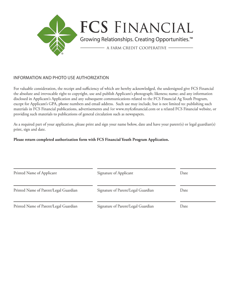 Get the free InformatIon and Photo Use aUthorIzatIon - FCS Financial