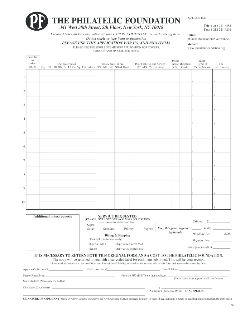 Get the free PLEASE USE THIS APPLICATION FOR US AND BNA ITEMS - philatelicfoundation
