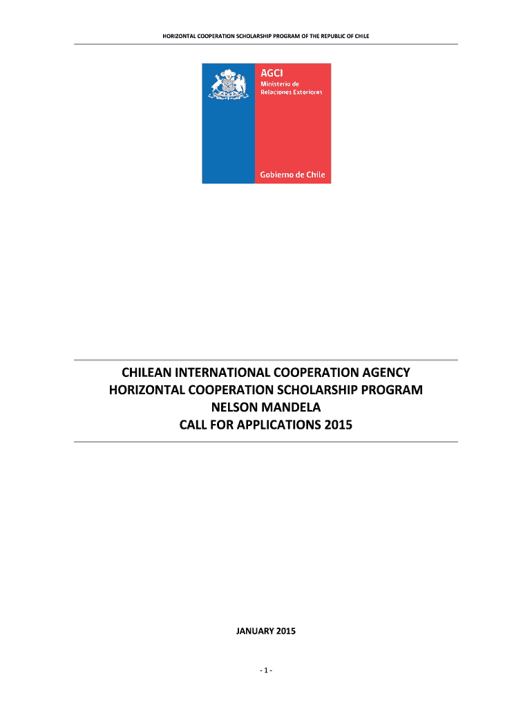 HORIZONTAL COOPERATION SCHOLARSHIP PROGRAM OF THE REPUBLIC OF CHILE CHILEAN INTERNATIONAL COOPERATION AGENCY HORIZONTAL COOPERATION SCHOLARSHIP PROGRAM NELSON MANDELA CALL FOR APPLICATIONS 2015 JANUARY