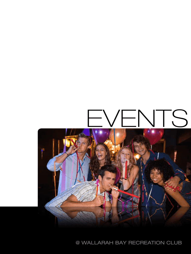 EVENTS WALLAH BAY RECREATION CLUB WELCOME Thank you for your interest in hosting your function or event at Wallah Bay Recreation Club. We are located on the Central Coast with a function room that