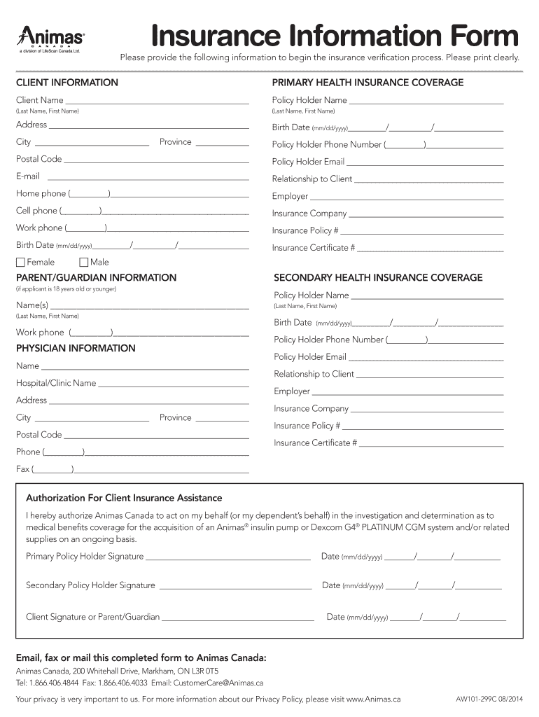 Insurance Information Form Please provide the following information to begin the insurance verification process. Please print clearly. CLIENT INFORMATION PRIMARY HEALTH INSURANCE COVERAGE Client Name