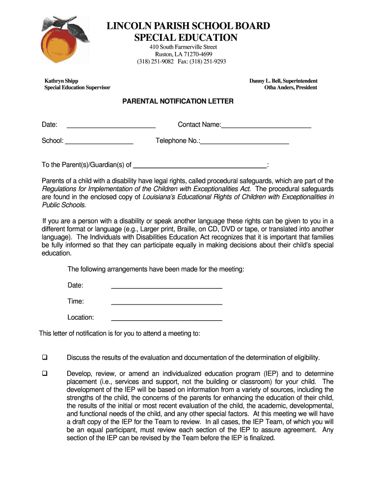 LINCOLN PARISH SCHOOL BOARD SPECIAL EDUCATION 410 South Farmville Street Huston, LA 712704699 ×318× 2519082 Fax: (318× 2519293 Kathryn Ships Special Education Supervisor Danny L. Bell, Superintendent