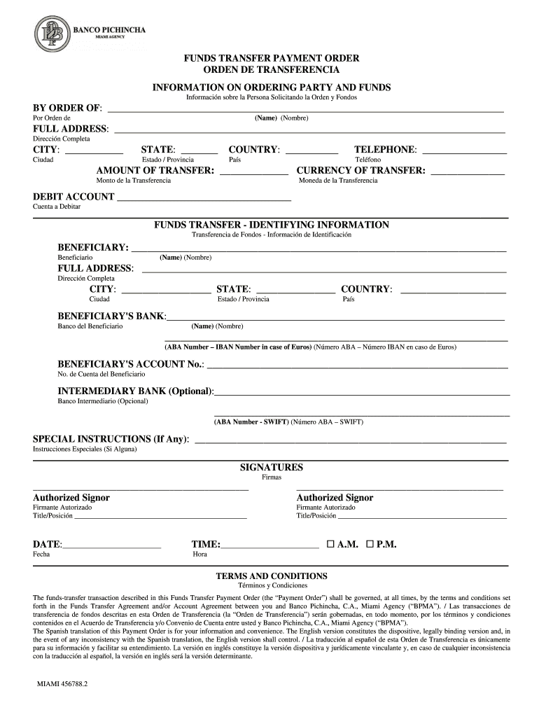 Get the free By order of - BANCO PICHINCHA MIAMI AGENCY Cuentas ...