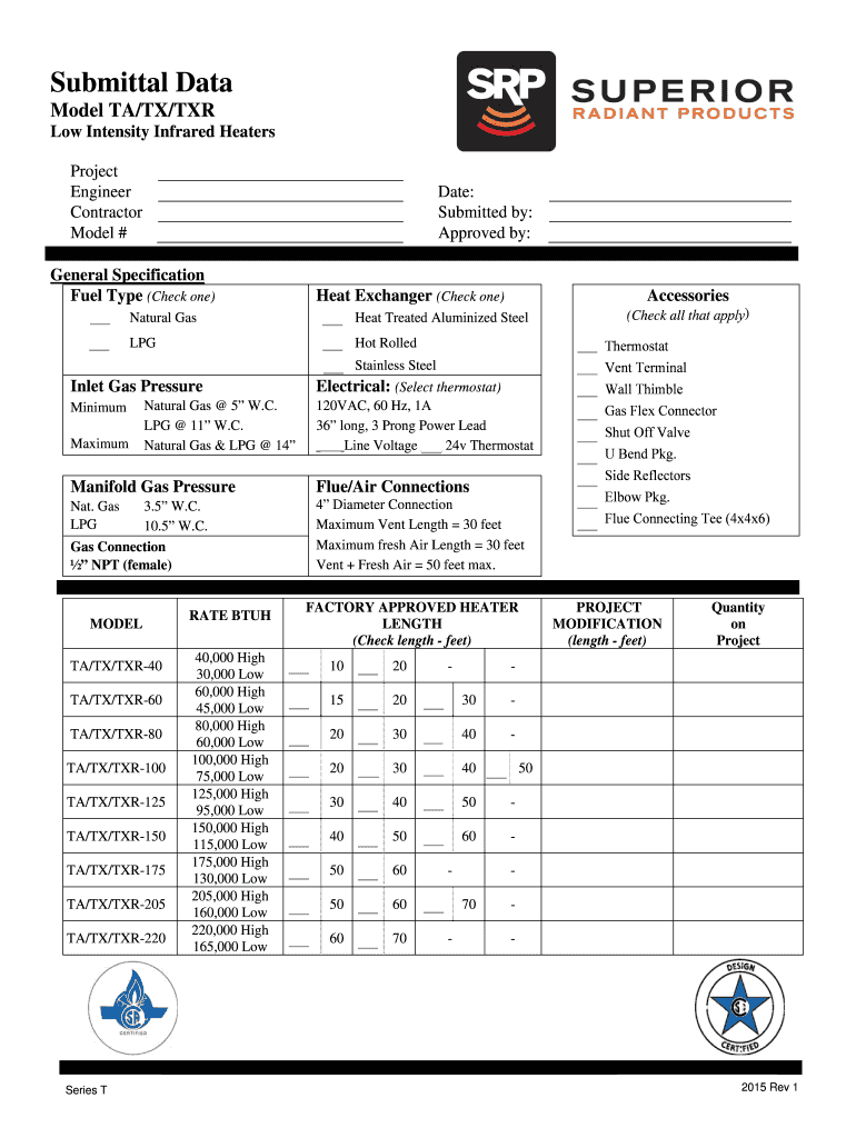 Get the free SRP T Submittal V2015 - bsuperiorradiantbbcomb