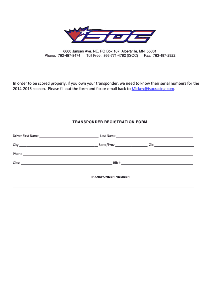 Get the free Transponder Registration Form - AMSOIL Championship Snocross