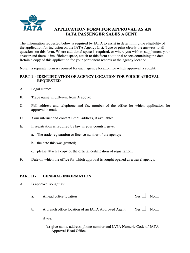 The information requested below is required by IATA to assist in determining the eligibility of