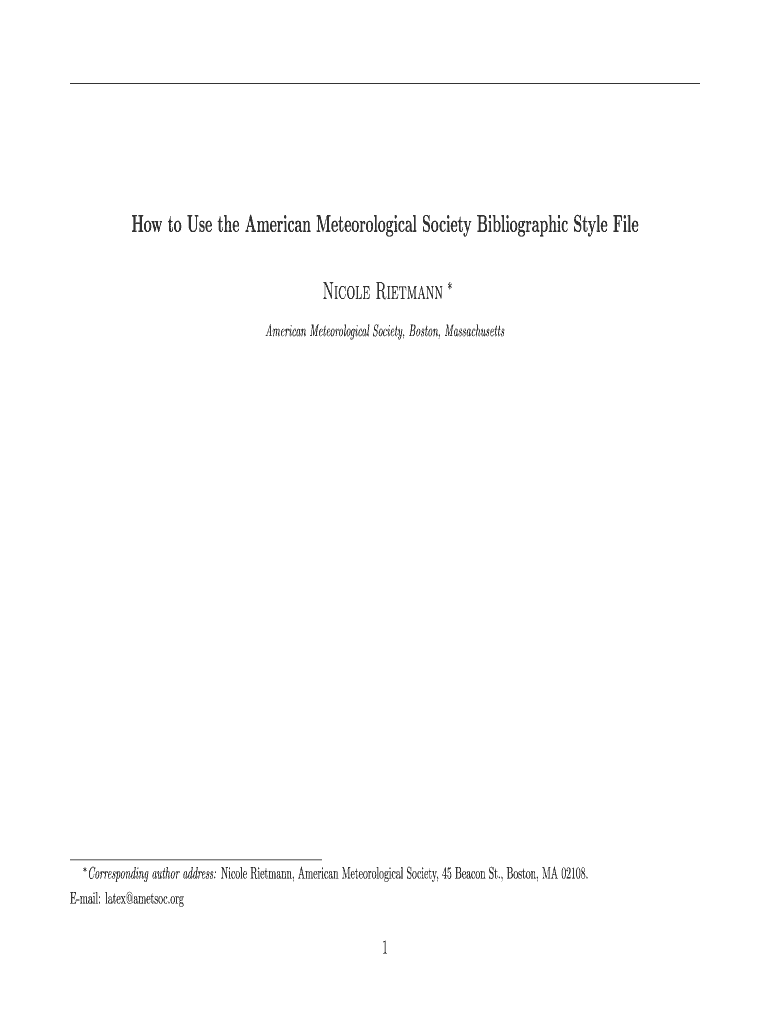How to Use the American Meteorological Society Bibliographic Style File Nicole Riemann American Meteorological Society, Boston, Massachusetts Corresponding author address: Nicole Riemann, American