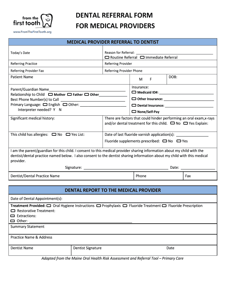 Get the free DENTAL REFERRAL FORM FOR MEDICAL PROVIDERS - fromthefirsttooth