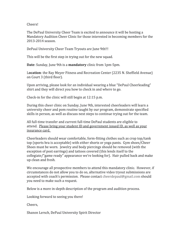 Get the free The DePaul University Cheer Team is excited to announce it will be hosting a