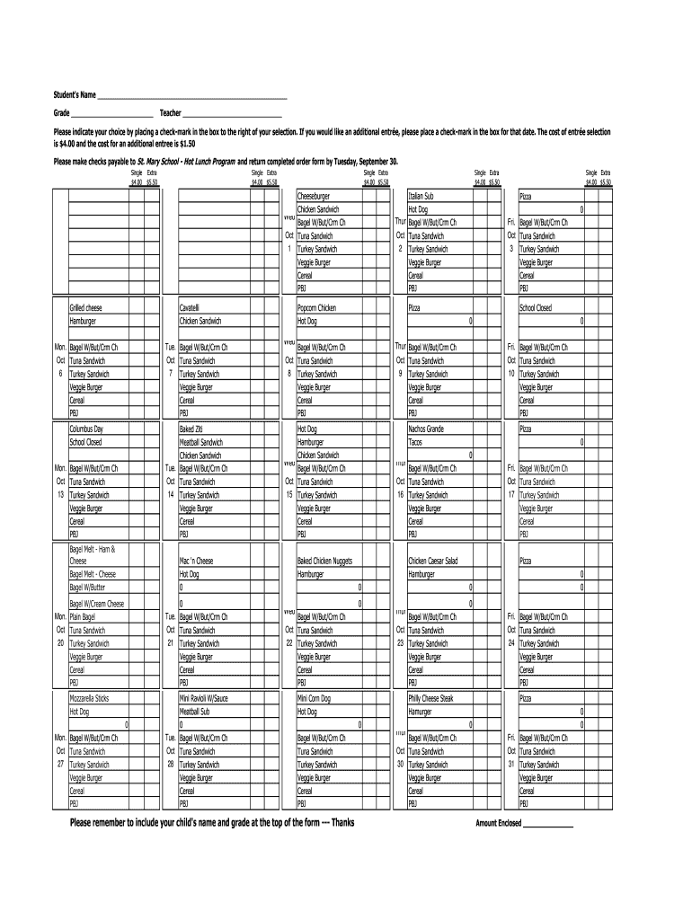 Student's Name Grade Teacher Please indicate your choice by placing a checkmark in the box to the right of your selection. If you would like an additional entire, please place a checkmark in the box
