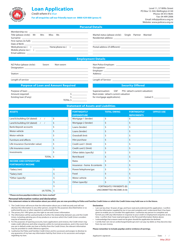 D FA M I L N E DI T UN Level 11, 57 Willis Street PO Box 12344, Wellington 6144 Phone: 04 472 9645 Fax: 04 499 2006 Email: info police cu.org.NZ Website: www.policecu.org.nz Credit where its blue