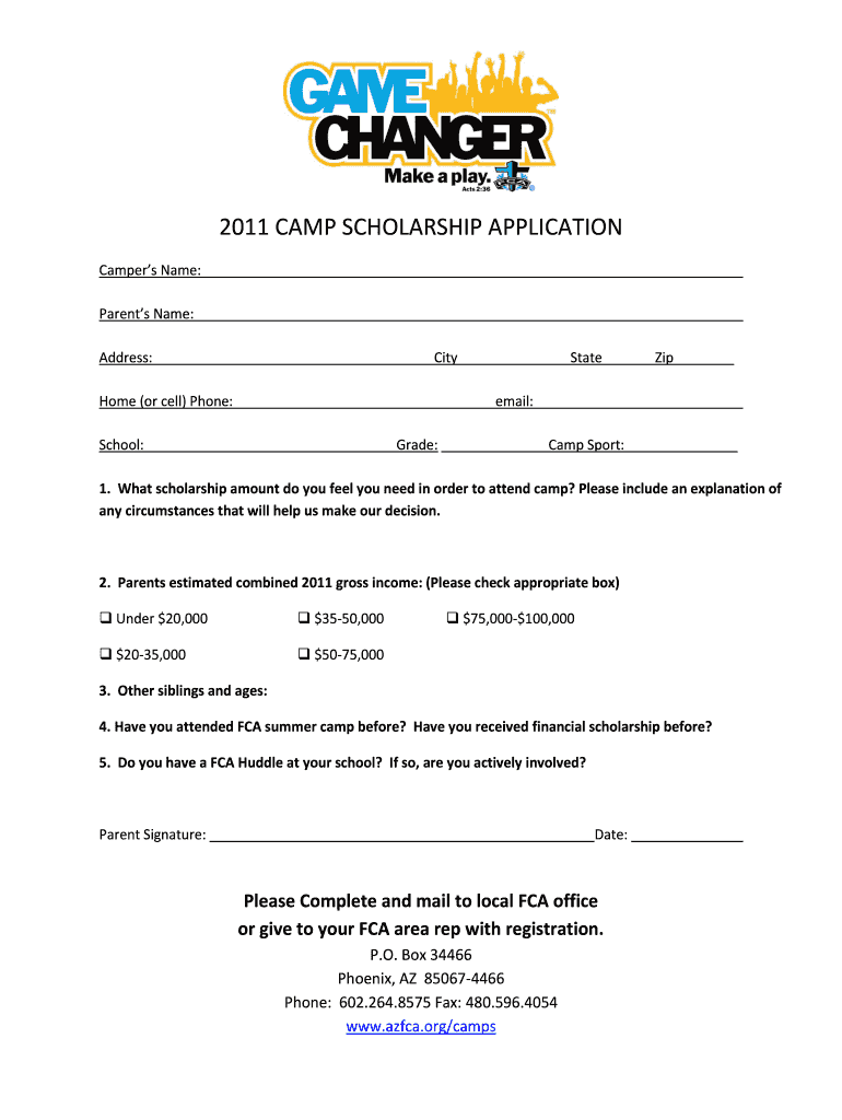 Get the free 2011 CAMP SCHOLARSHIP APPLICATION - Arizona FCA - azfca