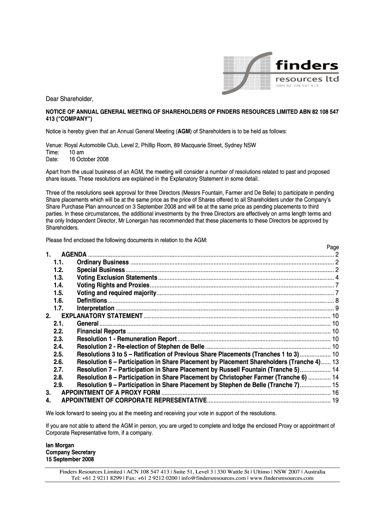 Get the free NOTICE OF ANNUAL GENERAL MEETING OF SHAREHOLDERS OF FINDER
