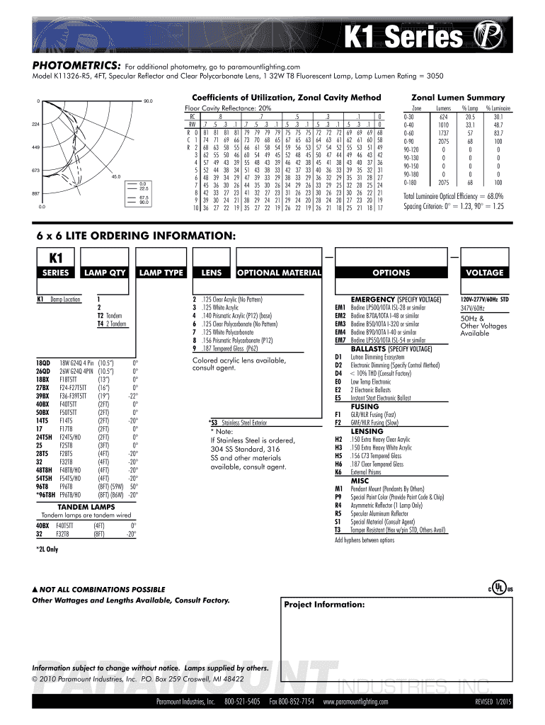 K1 Series FLUORESCENT SURFACE 45.0 6 × 6 LITE 45.0 APPLICATIONS: L×CUL Listed U Damp Location Industrial & Commercial BENEFITS: Luminaires adaptable to your specific needs FEATURES: Optional asymmetrical