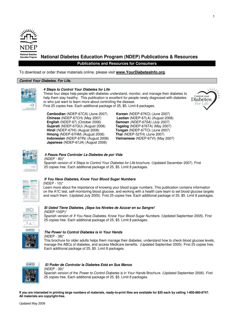 1 National Diabetes Education Program (NEP) Publications & Resources Publications and Resources for Consumers To download or order these materials online, please visit www.YourDiabetesInfo.org. Control