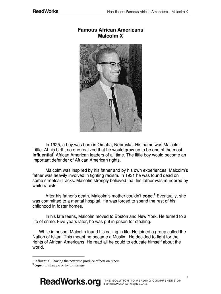 Get the free Nonfiction Famous African Americans Malcolm X - flossmoorhills sd161
