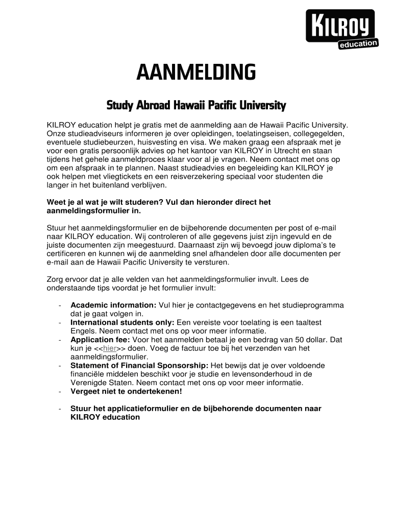 Get the free Study Abroad Hawaii Pacific University - education kilroyworld