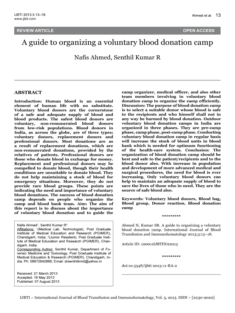 www.ijbti.comAhmed et al. Review article13OPEN ACCESS guide to organizing a voluntary blood donation camp