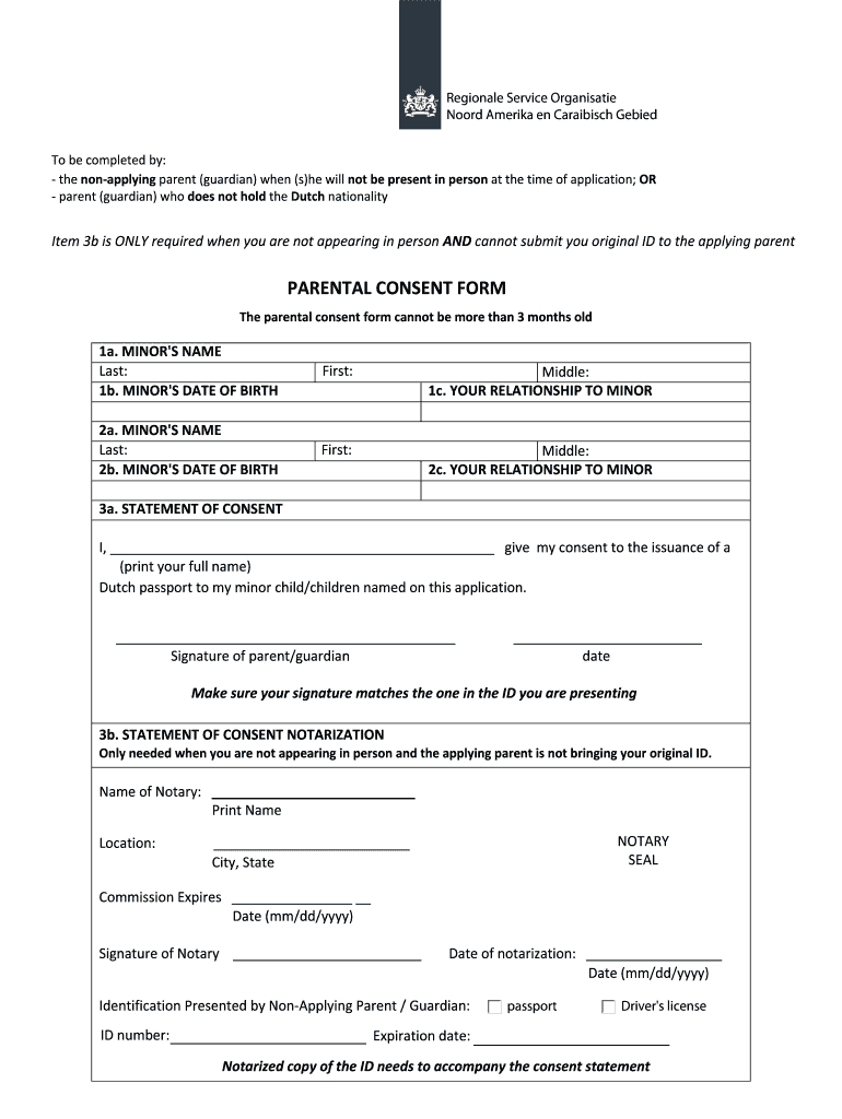 Regional Service Organization Noor America en Caraibisch Denied being completed by: the nonapplying parent (guardian) when (s×he will not be present in person at the time of application; OR parent