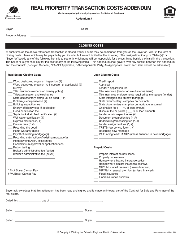 Get the free Real Property Transaction Costs Addendum
