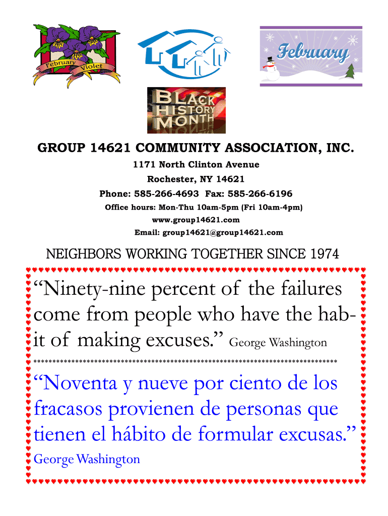 GROUP 14621 COMMUNITY ASSOCIATION, INC. 1171 North Clinton Avenue Rochester, NY 14621 Phone: 5852664693 Fax: 5852666196 Office hours: Months 10am5pm (Fri 10am4pm) www.group14621.com Email: group14621.com