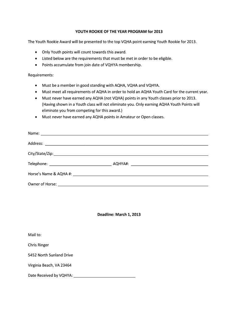Get the free YOUTH ROOKIE OF THE YEAR PROGRAM for 2013 The Youth ...
