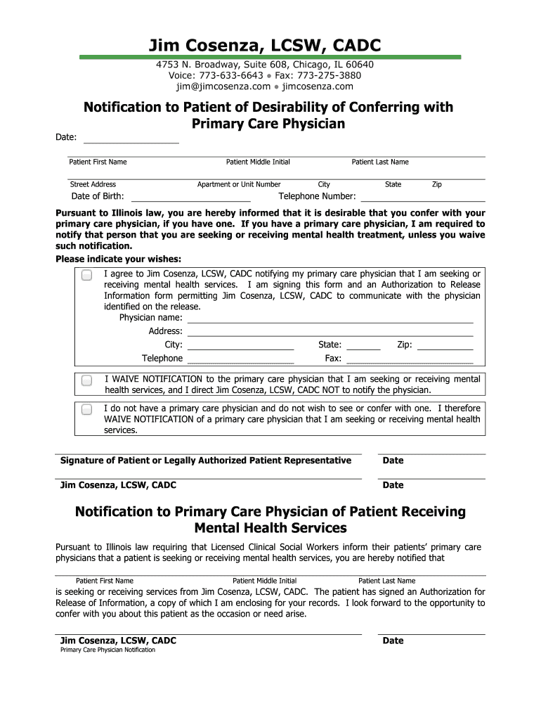 Get the free Notification to Patient of Desirability of