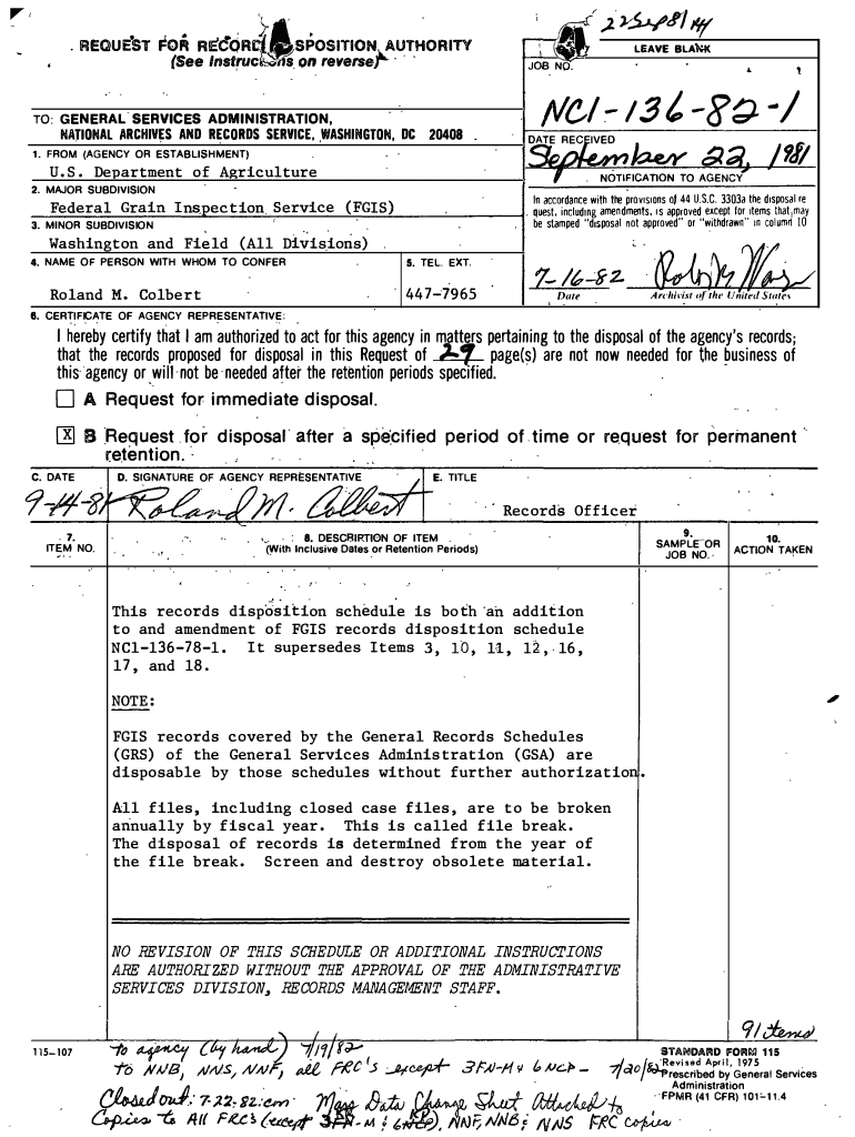Get the free Addition and Amendment to Federal Grain Inspection Service FGIS Records Disposition ...