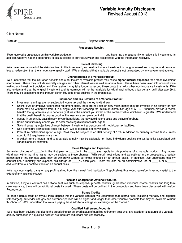 Get the free Variable Annuity Disclosure Form
