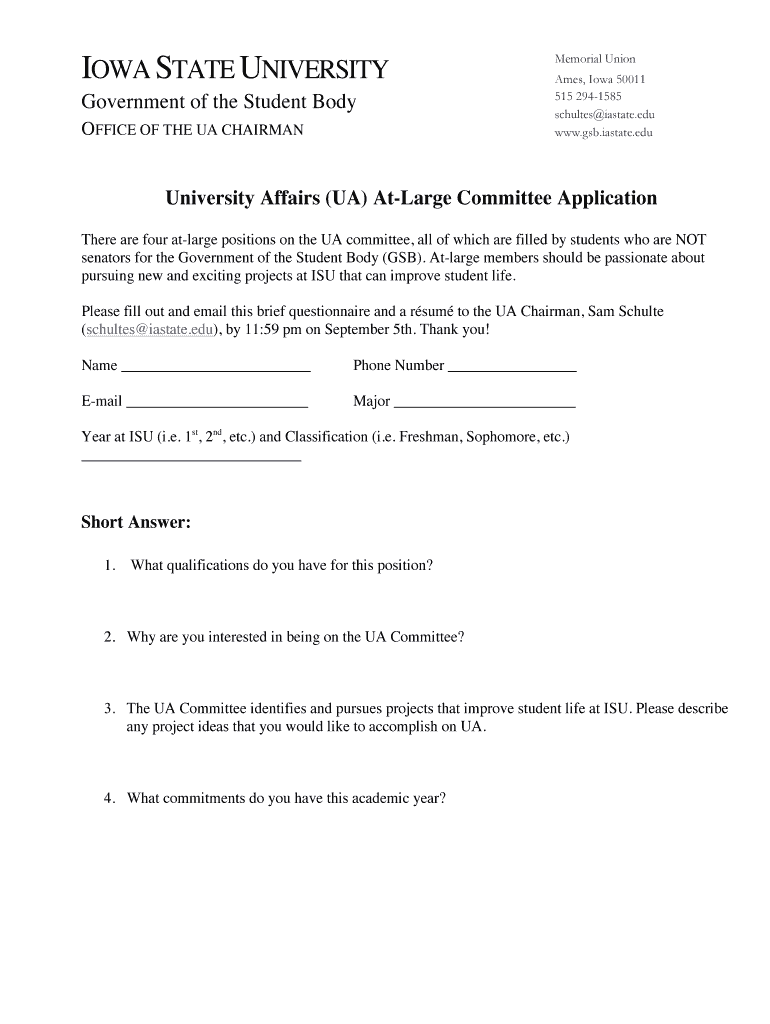 Get the free University Affairs UA At-Large Committee Application - gsb iastate