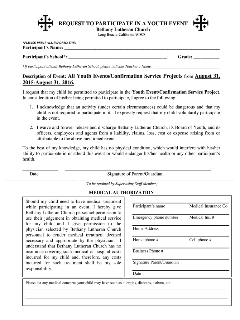 Get the free Year Long Medical Release 2015-2016 form - bethanylutheran