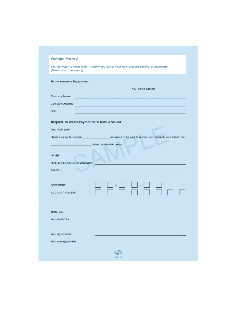 The sample letter to credit transfer sources serves as a formal notification to inform financial institutions and creditors about new account details. This letter is essential for ensuring a seamless transition for payments redirected to your new account. It is primarily utilized by individuals and businesses who need to update their credit transfer sources when switching accounts or changing banking institutions.