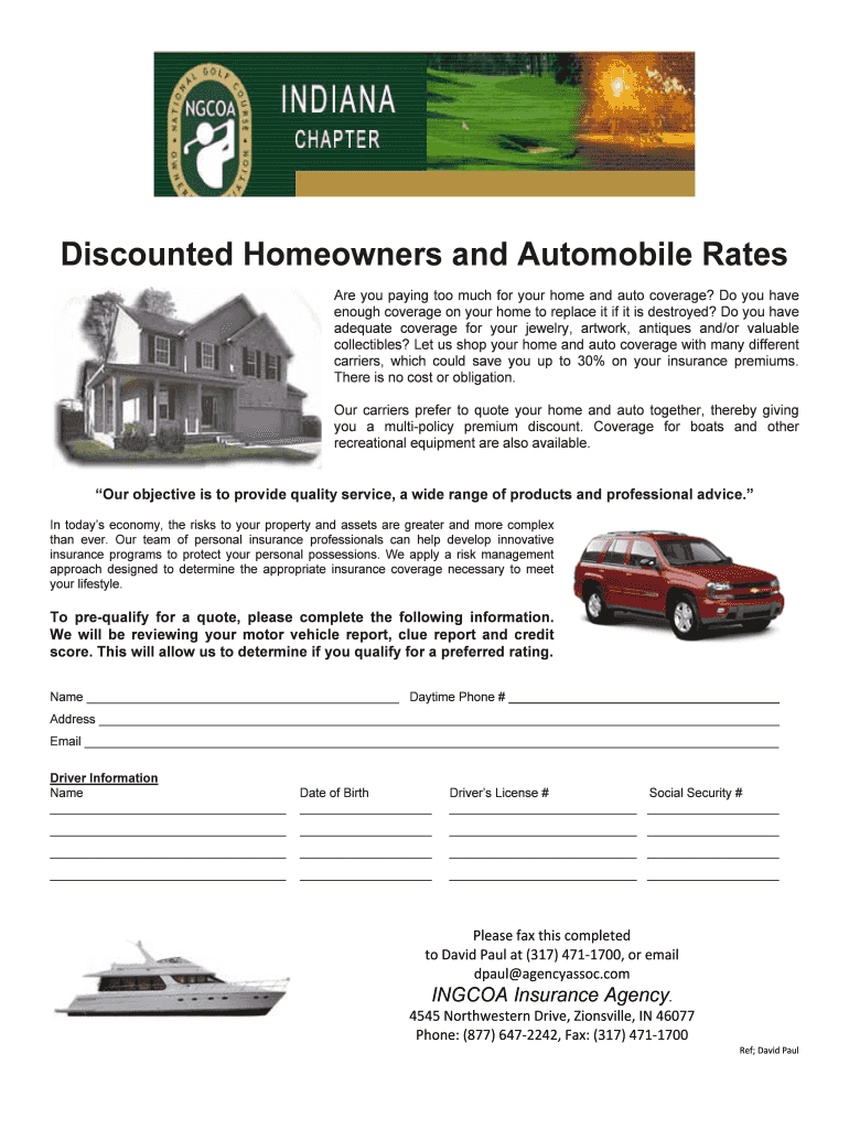 Get the free Auto - Home quote form INGCOAIAdoc - ingcoagolf